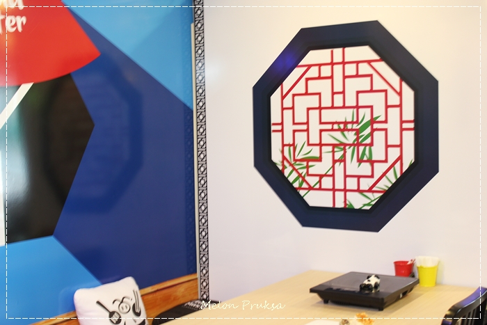 บรรยากาศร้านจะตบแต่งแนว Modern Chinese ใช้สีแดงจัดจ้าน น้ำเงิน ดำ เหลือง มีแพนด้าตัวยักย์ หรือที่ลูกค้าหลายๆคนเรียกห้วนๆว่า "จารย์ด้า" เป็น Signature ของร้าน ขนาดร้านไม่เล็ก ไม่ใหญ่ กำลังดี และข้าวของเครื่องใช้ทุกสิ่งอย่างคือใหม่แกะกล่อง