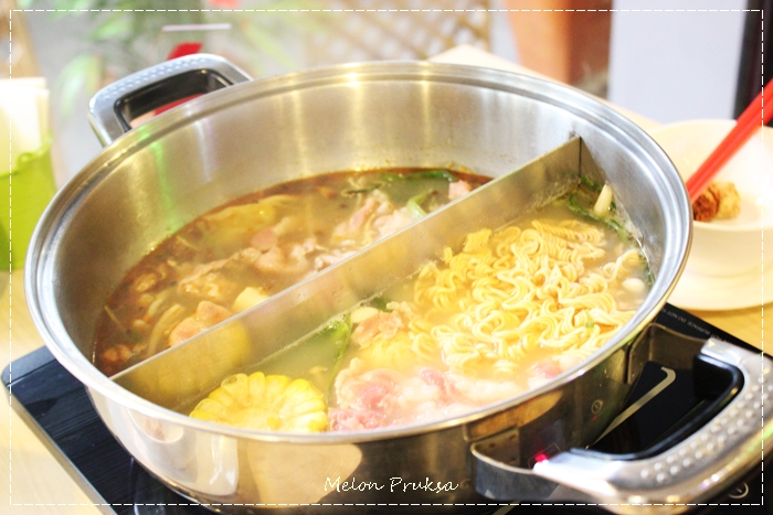 ก่อนจะเข้าสู่ช่วงเมนูในดวงใจ เรามาดูความพิเศษที่ไม่เหมือนใครของ Panda Master Hongkong Shabu กันซักนิด นั่นก็คือน้ำซุป ที่ร้านจารย์ด้าแห่งนี้ จะมีน้ำซุปอยู่ 4-5 แบบ เท่าที่จำได้มี น้ำซุปโจ๊ก น้ำซุปหม่าล่า น้ำซุปสะเต๊ะ น้ำซุปเห็ดหอม โดยใน 1 หม้อ เราสามารถเลือกน้ำซุปได้ 2 แบบ หรือจะของแบบเดียวลงหม้อแบบเพรียวๆเลยก็ได้ และที่ได้ทดลองสั่งมาทานคือน้ำซุปยอดนิยมจาก 2 ใน 4 ของที่นี่ นั่นก็คือน้ำซุปโจ๊ก และน้ำซุปหม่าล่าที่เกิดมาพึ่งเคยได้ยินชื่อ