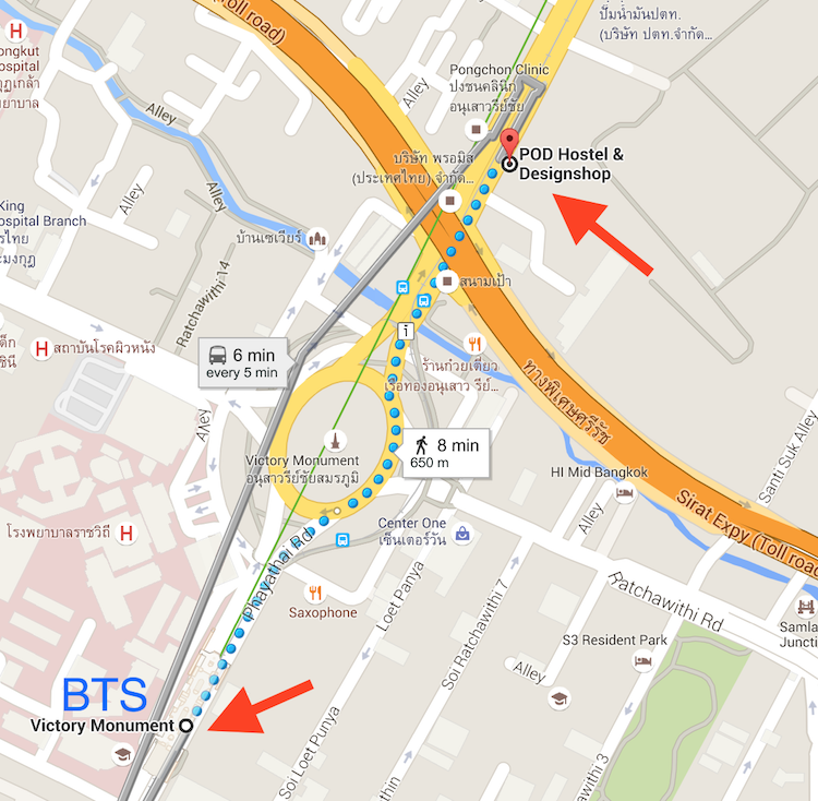 ถ้ามาโดยรถเมล์หรือแท็กซี่ และมาจากทางจตุจักร ให้ลงตรงป้ายรถเมก่อนถึงอนุเสาวรี หรือขอเค้าลงก่อนทางเลี้ยวขึ้นทางด่วนอ่ะ