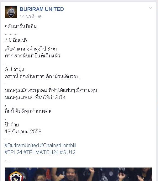 มีคนเงิบครับ อันที่จริงรอผลเมืองทองจบค่อยอัพสเตตัสสโมสรก็ได้นะ อิอิ