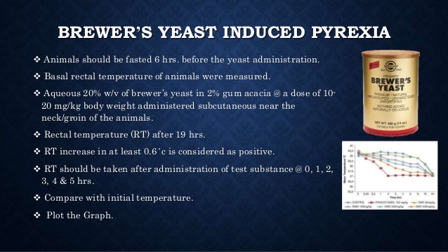 เวลาทดสอบ Antipyretic activity จะมีการชักนำให้เกิดอาการไข้ด้วย Brewer's yeast suspension