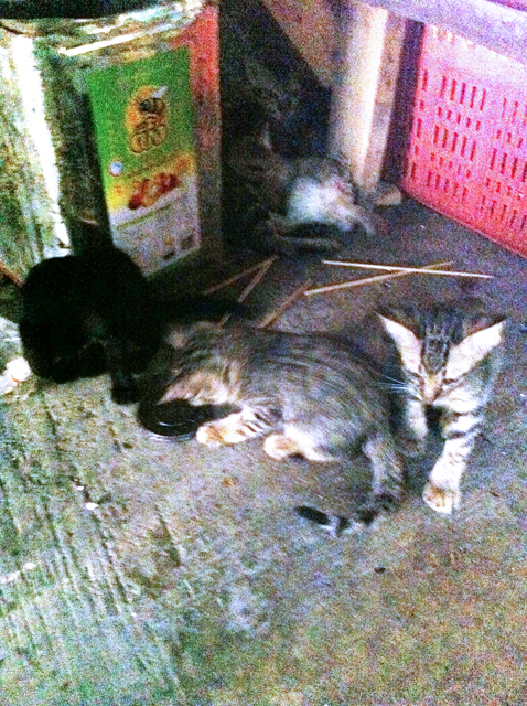 ตอนนี้ครอบครัวแมวจรจัดแม่ลูกอยู่อาศัยที่เพิงขายผักในตลาด ลูกๆยังเล็กๆอยู่เลยค่ะ