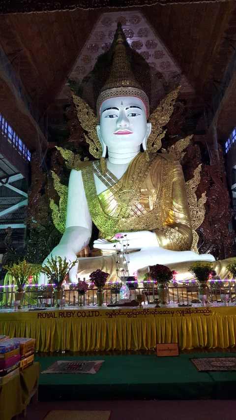 วัดแรกที่คุณโซพาเดอะแก้งค์เรามาคือวัดงาทัตจี (Nga Htat Gyi Pagoda) วัดพระใหญ่ตามที่คุณโซบอก เป็นพระพุทธรูปสีขาวปางสมาธิ ขนาดความสูงน่าจะเท่ากับตึก 4 - 5 ชั้นเลย