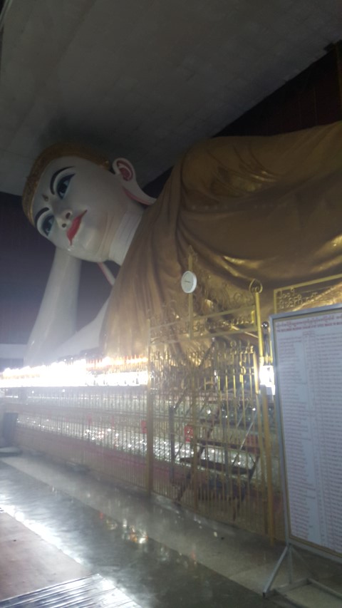และวัดที่ 2 และวัดสุดท้ายสำหรับวันนี้คือวัดเจาทัตจี (Chauk Htat Gyi Pagoda) หรือที่นักท่องเที่ยวชาวไทยเราเรียกกันว่าวัดนอนตาหวานอยู่ใกล้ๆกับวัดที่แล้ว (เห็นบอกจะอยู่คล้ายๆฝั่งตรงข้ามกัน) วัดนี้สถานที่ใหญ่กว่าวัดแรกและคนที่มาก็เยอะตามด้วยเช่นกัน ขอบอกว่าเห็นแล้วขนลุกเพราะอลังกาลสุดๆคับ