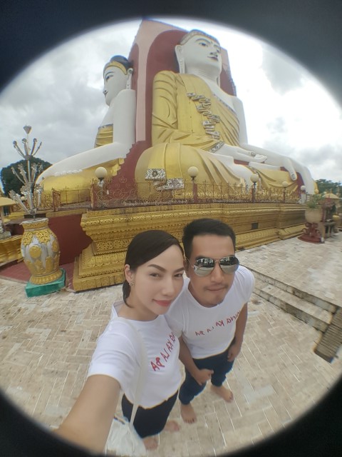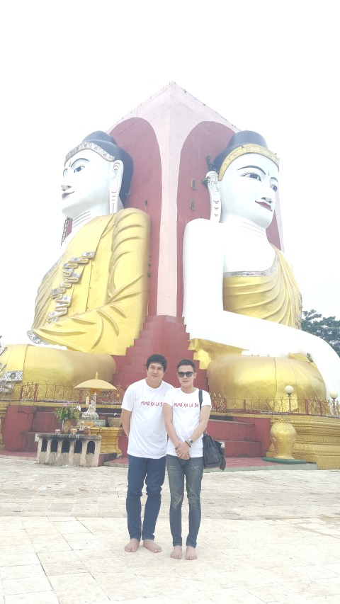 สถานที่แรกที่เรามาถึงคือ เจดีย์ไจ๊ปุ่น เป็นเจดีย์ที่มีลักษณะเป็นพระพุทธรูปหันหลังชนกันสี่ด้านก็ดูสวยดีอีกแบบครับ