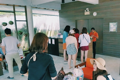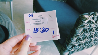 พอเข้าไปด้านใน ทางพนักงานจะสอบถาม ชื่อรีสอร์ทที่เราจองเอาไว้ พร้อมกับให้ Tag ติดกระเป๋ามา