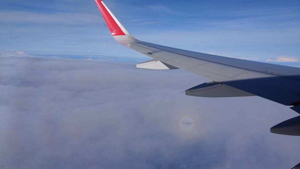 เครื่องไต่ระดับขึ้นมาแล้ว อากาศตอน TakeOff ฝนพรำๆ แต่ข้างบนสวยมาก คนละเรื่องกันเลย
