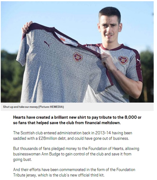 [Spoil] คลิกเพื่อดูข้อความที่ซ่อนไว้http://metro.co.uk/2015/09/19/hearts-unveil-third-kit-bearing-names-of-8000-fans-that-saved-club-from-financial-crisis-5398781/
