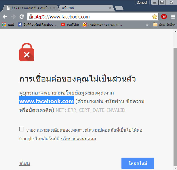 อะไรทำให้ตอนเข้า facebook เครื่องผมแสดงแบบนี้ครับ