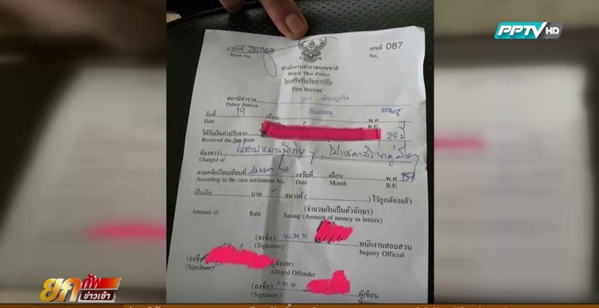 อาจารย์จากสถานศึกษาแห่งหนึ่งใน จ.ภูเก็ต ร้องเรียนเข้ามายังรายการ"ยกทัพข่าวเช้า"สถานีโทรทัศน์พีพีทีวี ว่ามีกรณีเจ้าหน้าที่ตำรวจ สภ.เมืองภูเก็ต ออกใบสั่งค่าปรับ แต่ไม่ยอมระบุจำนวนเงินในใบเสร็จ