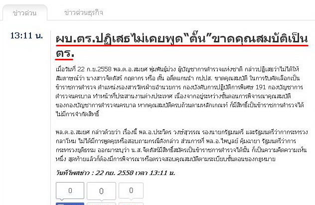 ผบ.ตร.ปฏิเสธไม่เคยพูด“ตั๊น”ขาดคุณสมบัติเป็น ตร.