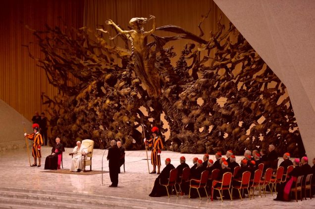ถามชาวคริสต์ โดยเฉพาะคาทอลิก ปฏิมากรรมด้านหลังโป๊ป คืออะไร สื่อถึงอะไร ดูน่ากลัว