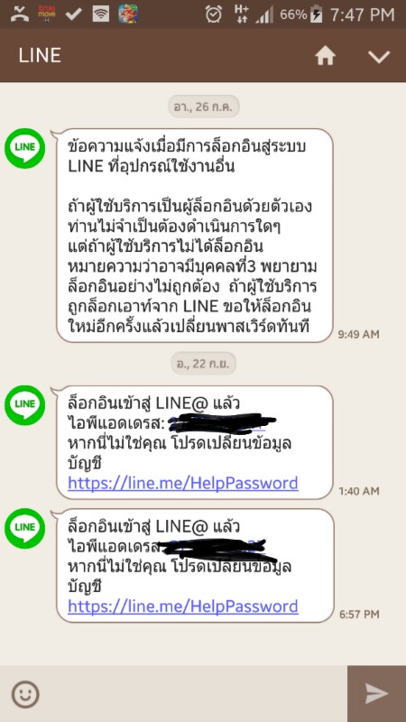 ไม่ทราบว่าเกิดอะไรขึ้น ID นี้ อยู่กับโทรศัพท์ผมตั้งหลายปีแล้ว แต่ช่วงสัปดาห์มานี้เด้งให้ผมตรวจสอบหมายเลขที่ลงทะเบียนไว้กับ line ซึ่งก็จะต้องคอนเฟิร์มใหม่ทุกครั้ง วันหนึ่งบางทีเจอ 3-4 ครั้ง ใครเคยเจอแบ