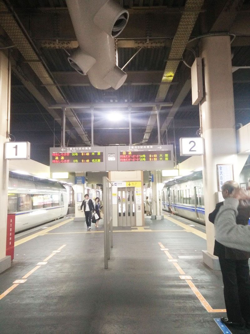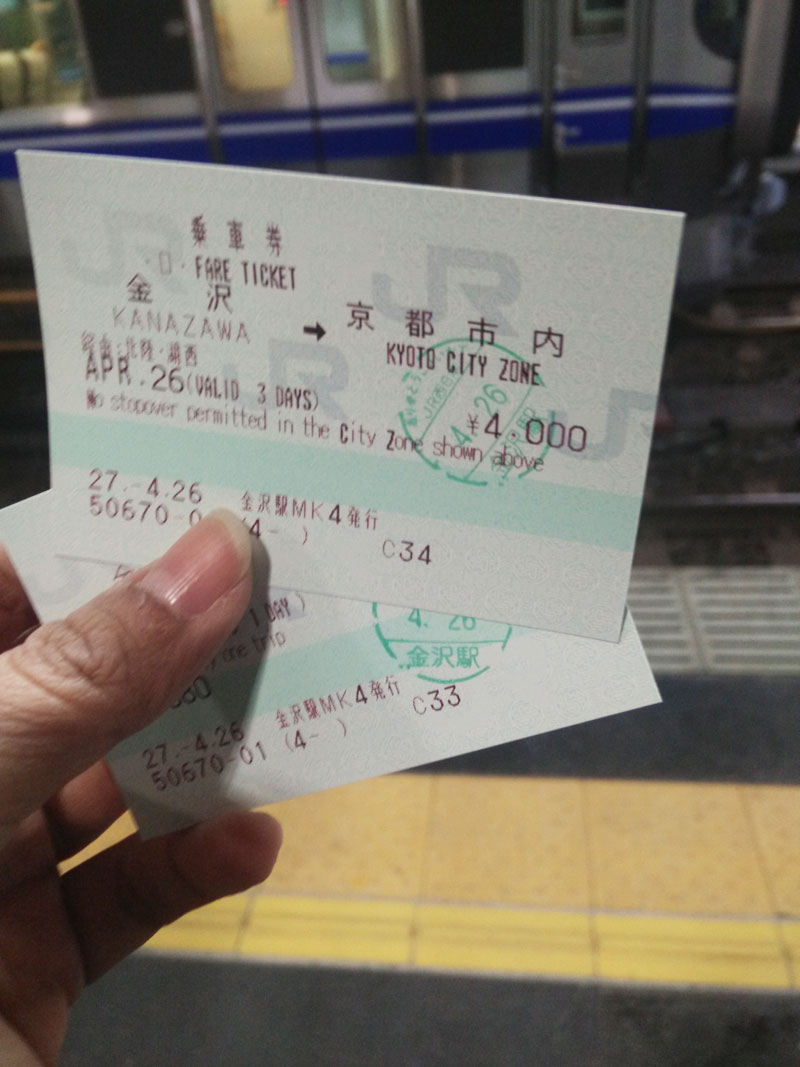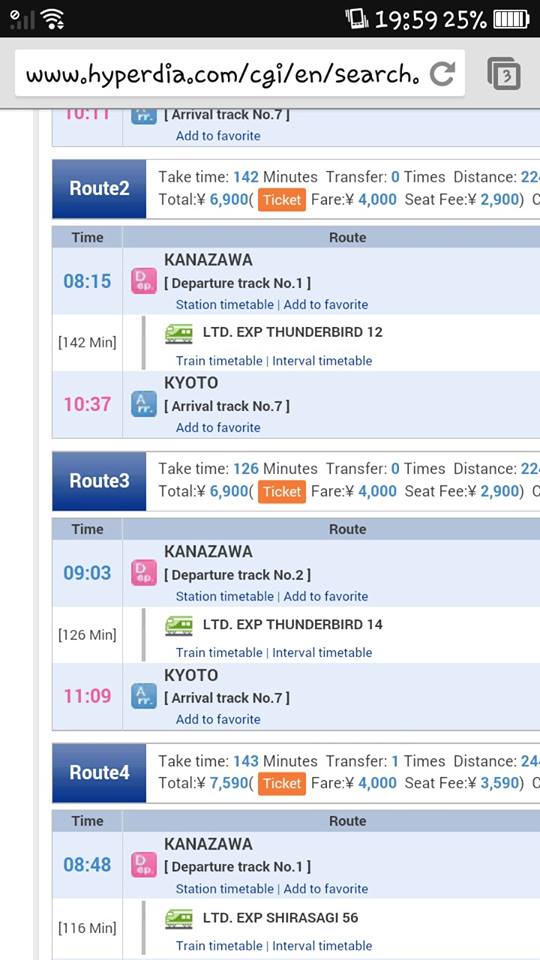เดินทางกลับ จากคานาซาว่า ไป ขึ้นเครื่องที่สนามบินคันไซ โอซาก้า แต่เราขึ้นเครื่องตอนเที่ยงคืนกว่าๆ เพราะฉนั้นวันนี้ก็เที่ยวได้อีกเต็มวัน ตามแผนของเราคือ เราจะนั่งรถไฟจาก JR คานาซาว่าไปลงเกียวโตก่อน ก่อนนอนเมื่อคืนเราเปิดเวบ hyperdia เพื่อดูรอบรถไฟไปลงเกียวโต