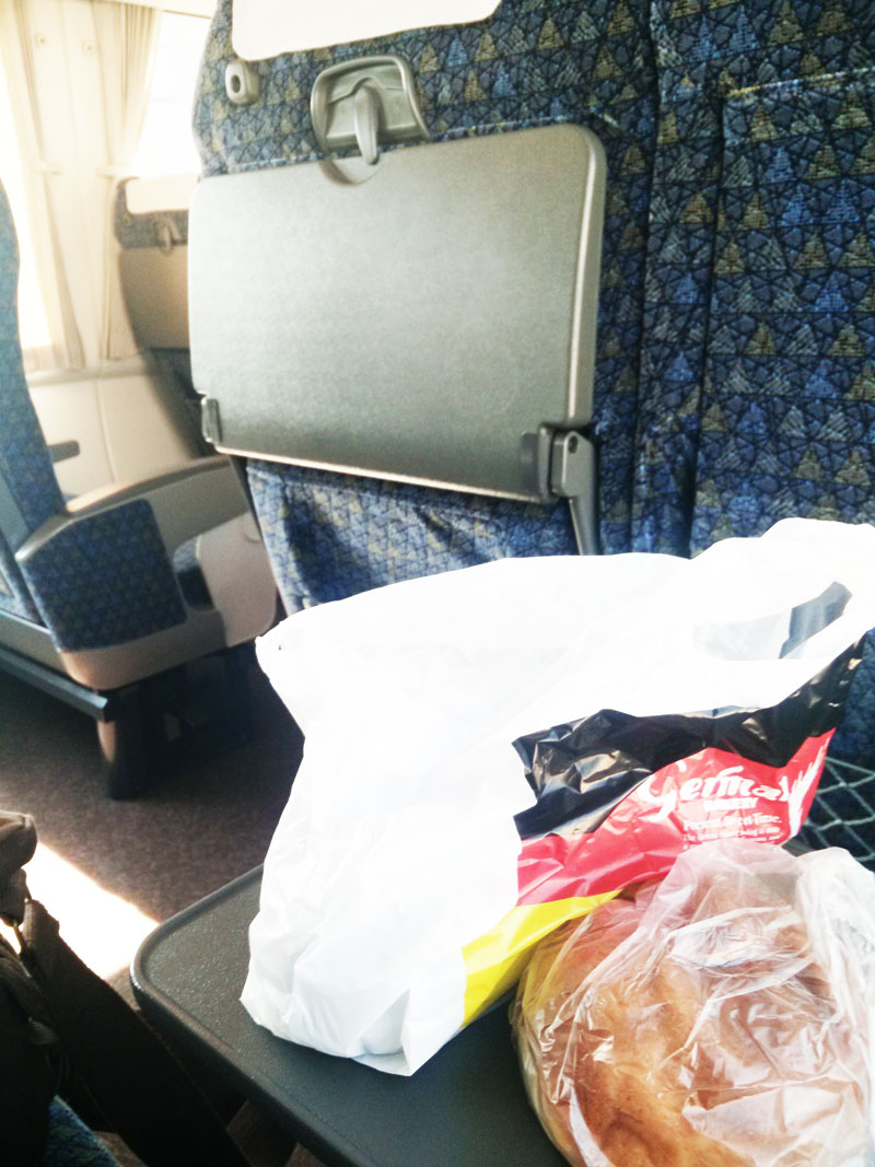 ตอนแรกไม่กล้ากิน 555++ กลัวเหมือน BTS บ้านเรา แต่เห็นมีที่วางก็เลยเดาว่าน่าจะกินได้ ขนมปังลงมาแอบซื้อตอนดึกเมื่อคืนก่อนนอนตรงสถานี JR จำราคาไม่ได้แหละแต่ไม่แพง