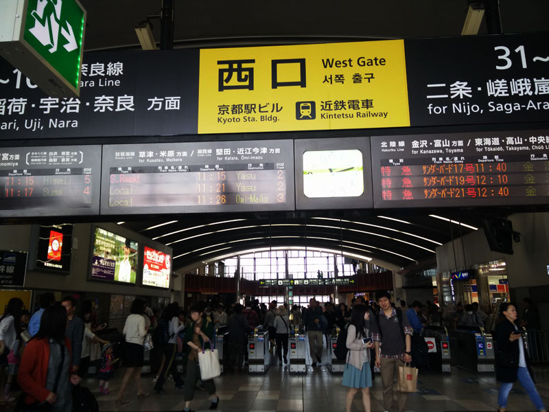ถึงแล้วเกียวโต ^^ ไปทางไหนหละ เดาๆ เดินออกมาตามป้าย เพื่อไป Information เพื่อหาแผนที่กับถามทาง ภารกิจวันนี้เราอยากไป วัดทองมาก ขอบอกว่ามาก เราดูรูปวัดทองมานานมากแหละ เราต้องมาให้ได้ ส่วนที่อื่นๆ เราไม่ได้หาข้อมูลมาเท่าไหร่ ถ้ามีเวลาแล้วค่อยคิดอีกทีวันนี้ ปล่อยชิลล์ เดินหาล็อคเกอร์ใส่กระเป๋า เต็มทุกตู้เลยเลยเดินไปถามประชาสัมพันธ์เขาบอกว่าอยู่ด้านล่างอีกจุดหนึ่ง เราจำไม่ได้แหละชั้นไหน ก็เดินมั่วๆ พยายามหาป้ายบอกแล้วเดินตามไปเรื่อยๆ