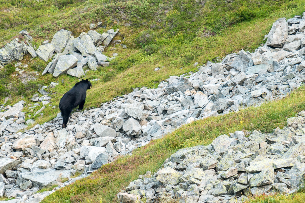 สิ่งที่น่าสนใจอีกอย่าง นอกจากเก็บบลูเบอรี่กินตามทางนั่นคือ เมื่อเราเดินเข้ามายิ่งลึกเท่าไหร่ โอกาสที่จะเห็นสัตว์ป่าก็เยอะมากขึ้นเท่านั้น เช่นตัว Marmot Pika (พยายามจะถ่ายรูปแต่เปลี่ยนเลนส์ไม่ทันจริงๆค่ะ) รวมถึง Black Bear ตกใจมากตอนเจอ ถึงกับทำอะไรไม่ถูกเลย มันก็มีหันมามองนิดนึง แล้วมันก็เดินจากไป สำหรับคนที่เตรียมตัวมาเจอน้องหมี (ฝรั่งเขาอยากเจอมาก เล่าให้ฟังแล้วตื่นเต้นกันใหญ่) เจ้าหน้าที่บอกว่าธรรมชาติหมีจะไม่ค่อยสนใจมนุษย์สักเท่าไหร่ ถ้ามันได้ยินเสียงเรามันก็จะพยายามหลบๆ ไม่ออกมา ดังนั้นเวลาเดินในที่ที่ไม่ค่อยมีคนก็ให้ร้องเพลงพูดคุยเสียงดังไปเรื่อยๆ แต่ถ้าเจอกันจริงๆก็ให้ค่อยๆถอย แต่อย่าละสายตา ถ้ามันจะเข้ามาทำร้ายต้องสู้กลับเท่านั้น เพื่อให้มันคิดว่าเราก็เป็นผู้ล่าชั้นเดียวกับมัน แกล้งตายนี้ไว้เป็นทางเลือกสุดท้ายเลย ถ้า Glizzly นี่ห้ามสู้นะคะพี่เค้าโหดไป ถ้าสู้ไม่ไหวห้ามนอนหงายท้อง เพราะมันจะเริ่มกินเราจากท้อง ให้นอนแกล้งตายท้องคว่ำไว้ มันก็จะเขี่ยเราให้หงายท้อง ถ้าไม่ได้เดี๋ยวมันก็เดินหนีไปเอง