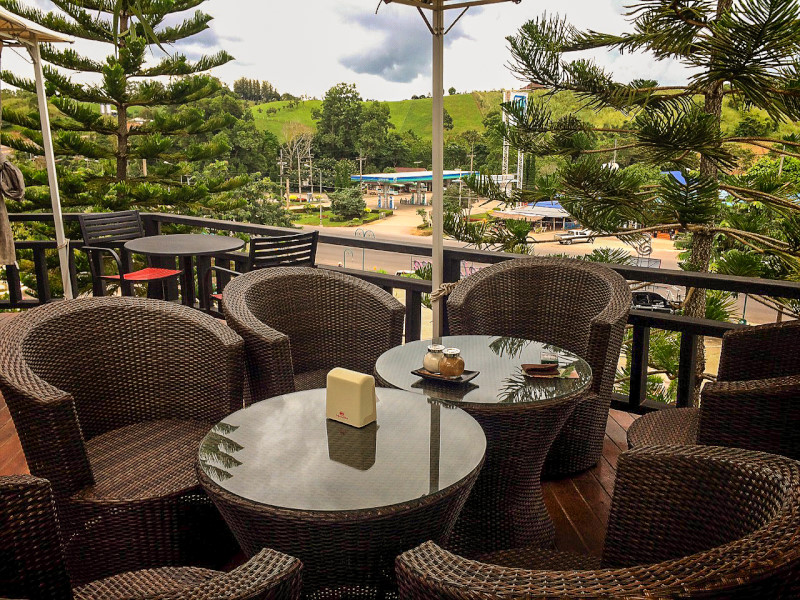 ได้เวลาไปเล่นโค้งกันแล้ววววว ขับรถขึ้นไปได้สักพักหันไปเจอร้านกาแฟเล็กๆอยู่ด้านซ้ายแต่เบรคไม่ทัน อ้าววววมองหลังแล้วถอยสิครัชชชชช แวะดื่มน้ำกันอีกคนละแก้ว ความจริงแล้วอยากจะนั่งดูวิวสักแป๊ปปปป วิวมันสวยดี นี่คือวิวจากร้านกาแฟที่ว่า 555 ร้านมีไม่ถ่าย ถ่ายมาแต่รถ บ้าไปแล้วววววว