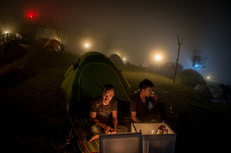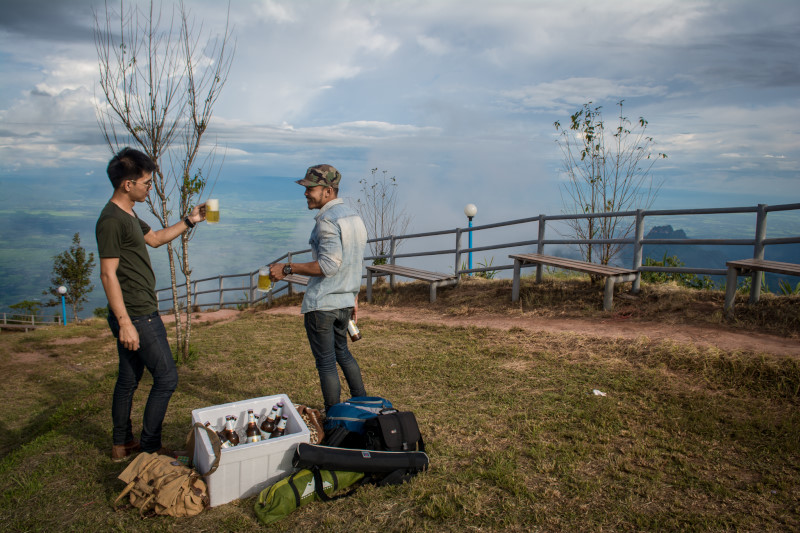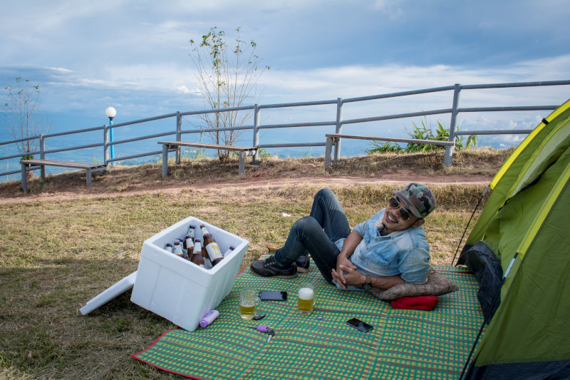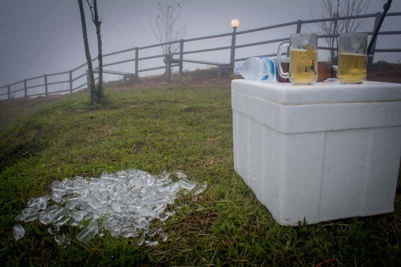ตื่นเช้ามาเห็นแต่หมอกฟรุ้งฟริ้ง เหลือเบียร์ 2 ขวด ขี้เกียจขนกลับเปิดท้าหมอกซะเลย น้ำแข็งซื้อตั้งแต่บ่ายจนเช้าอีกวันยังละลายไม่หมดเลย คือดีมากอ่ะ 55