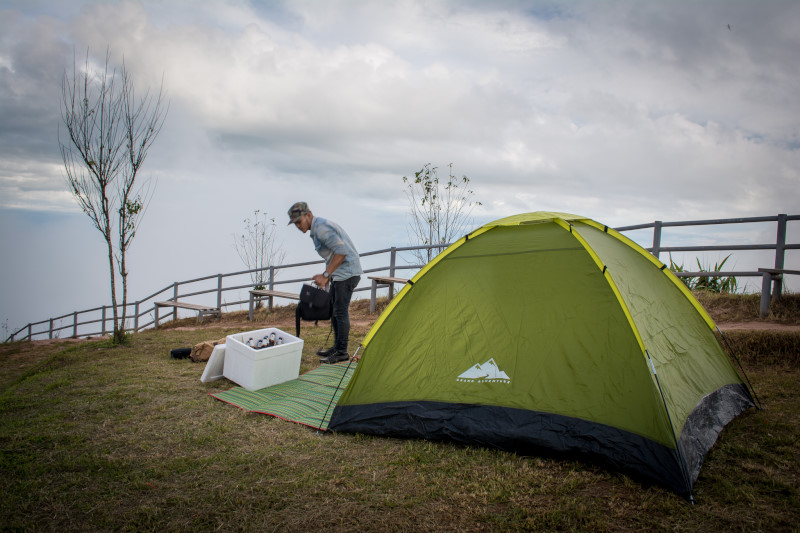 พวกเราขึ้นมากลางเต๊นกันที่หอวัดอุณภูมิ มาถึงก็เล็งแล้วจัดการกลางเต๊นได้เลยครับ เดี๋ยวค่ำๆเจ้าหน้าที่เค้าจะเดินมาเก็บตังค์ค่ากางเต๊นท์เองครับ