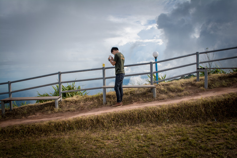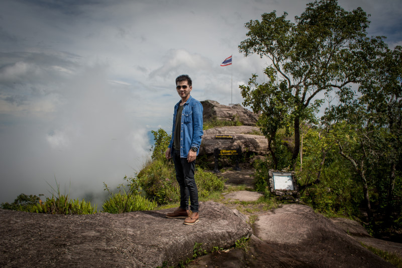 หลังจากนั่งพักกันจนหลายเหนื่อยก็เดินกลับ ผ่านผาชูธง แวะถ่ายรูปกันนิดหน่อย ย้ำว่านิดหน่อย
