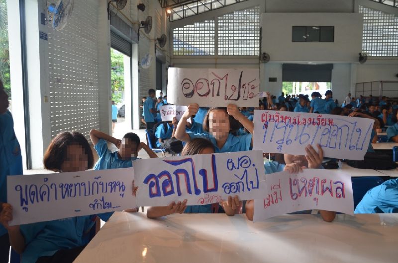 น.ส.เดือนฉาย แก้วบังเกิด หรือครูเปิ้ล อายุ 31 ปี เปิดเผยว่า ตนเป็นพนักงานราชการครู สอนวิชาคณิตศาสตร์ให้กับเด็กนักเรียนชั้น ม.4 และ ม.5 โดยเป็นครูสอนมานานเกือบ 6 ปี และมีความตั้งใจที่จะสอนเด็กนักเรียนให้มีความรู้ จนเป็นที่รักใครของเด็กๆ แต่ที่ผ่านมา ผอ.ได้ทำการประเมินผลงานการสอนไม่ให้ผ่านมาโดยตลอด ตนเป็นเพียงแค่พนักงานราชการ จึงไม่กล้าโต้เถียง กระทั่ง ผอ.ได้บังคับให้ตนลาออกจากการเป็นพนักงานราชการ จึงตัดสินใจร่วมกับเด็กๆ ออกมาเพื่อเรียกร้องขอความเป็นธรรม