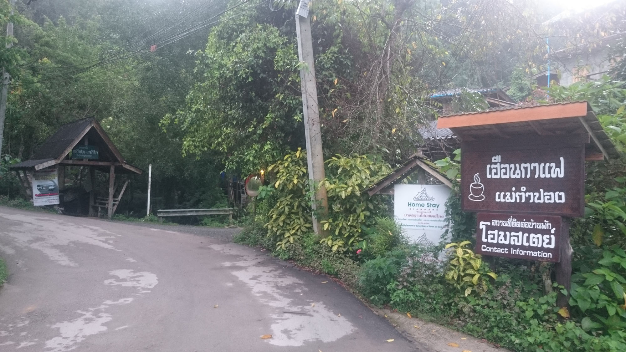 ก็ได้โฮมสเตย์ที่ร้าน "เฮือนกาแฟ" ประมาณเกือบปลายๅ หมู่บ้าน ใกล้วัด ใกล้น้ำตก โดยลักษณะเป็นแบบกระท่อมดูอบอุ่นมากๆเลยคับ