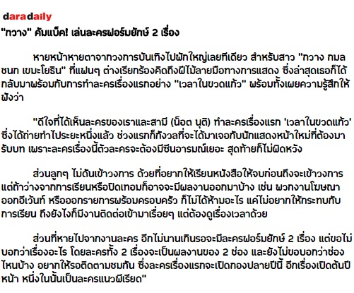 จากเนื้อหาของข่าวก็ต้องรอลุ้นว่าเป็นละครเรื่องอะไร