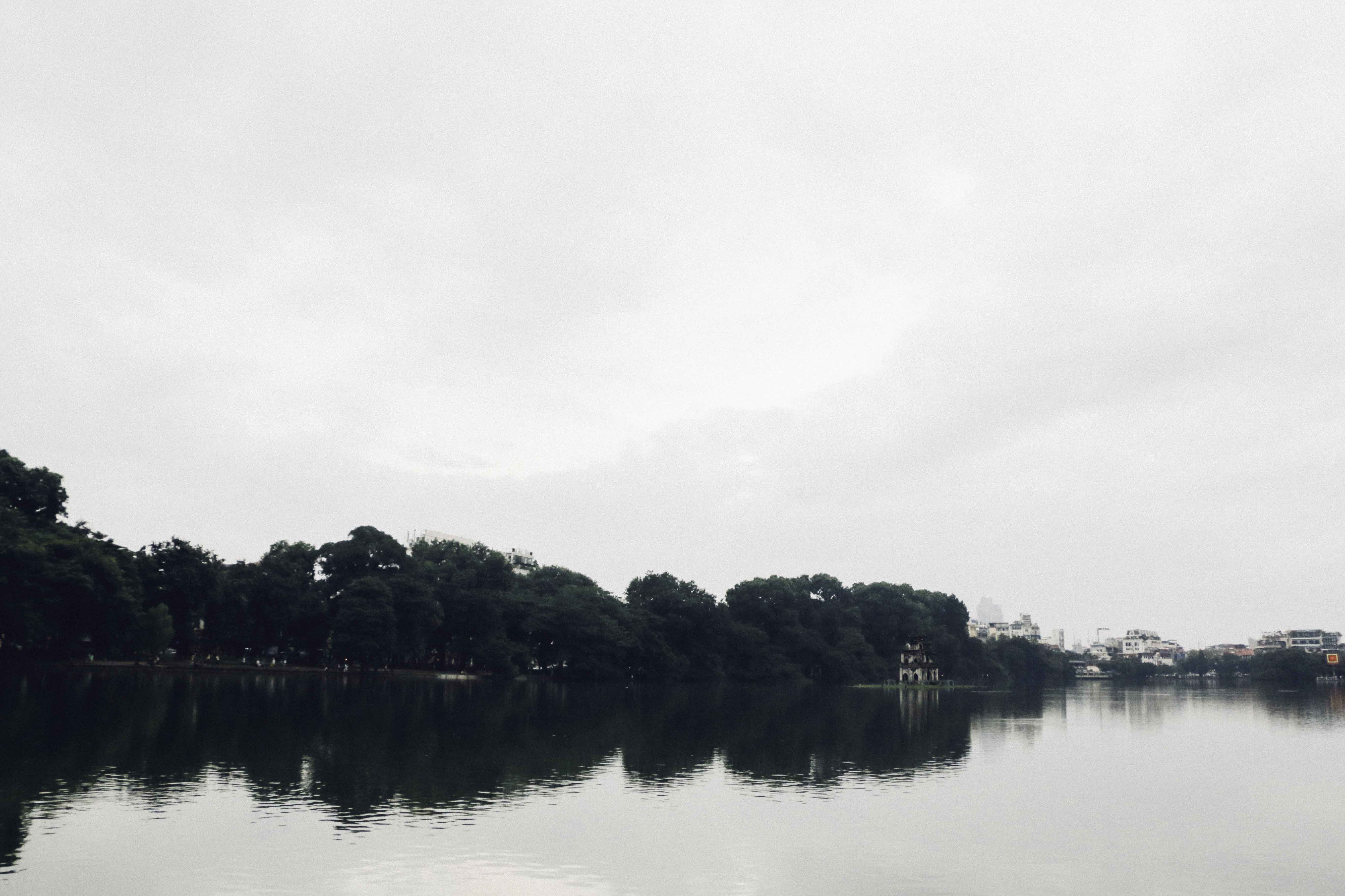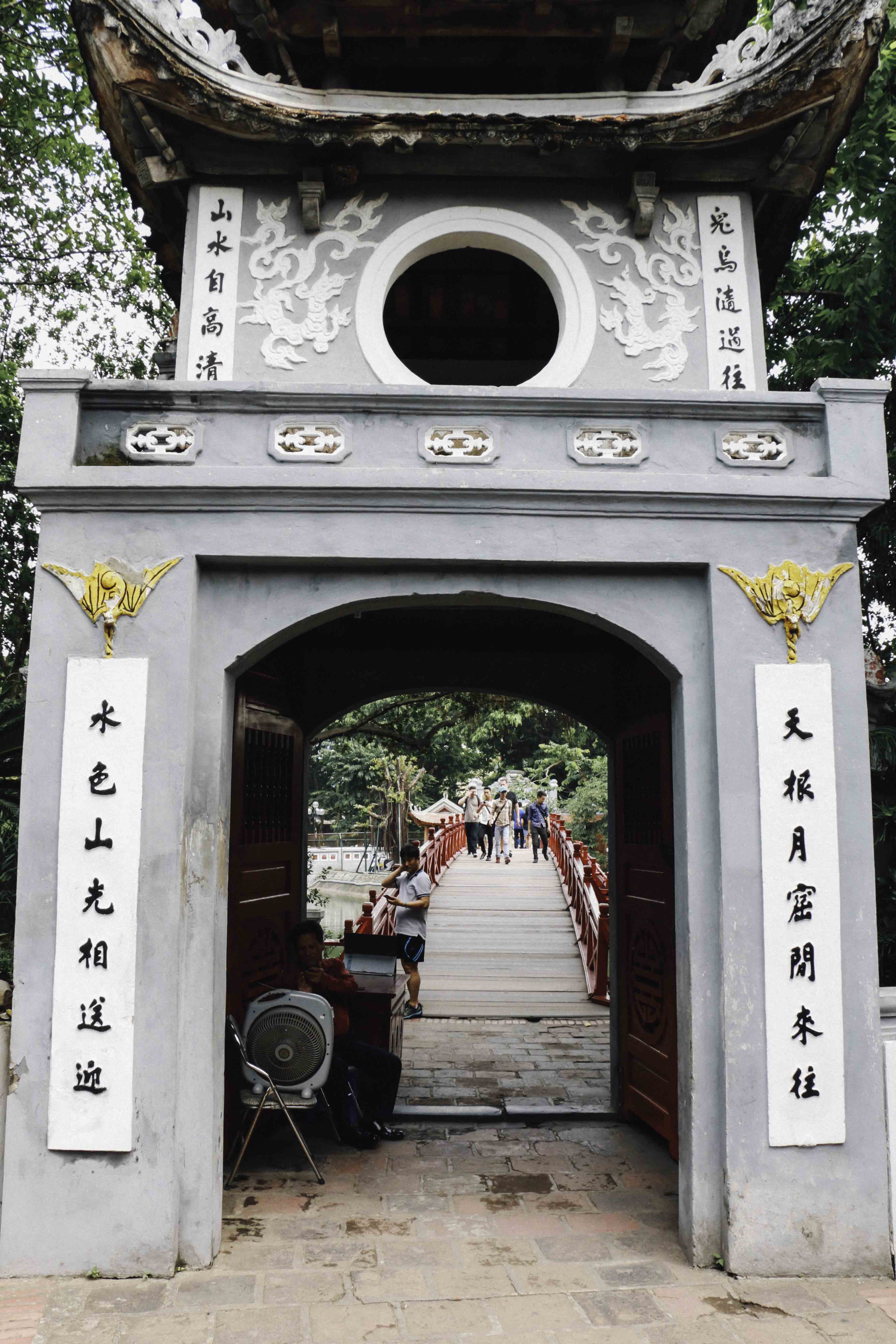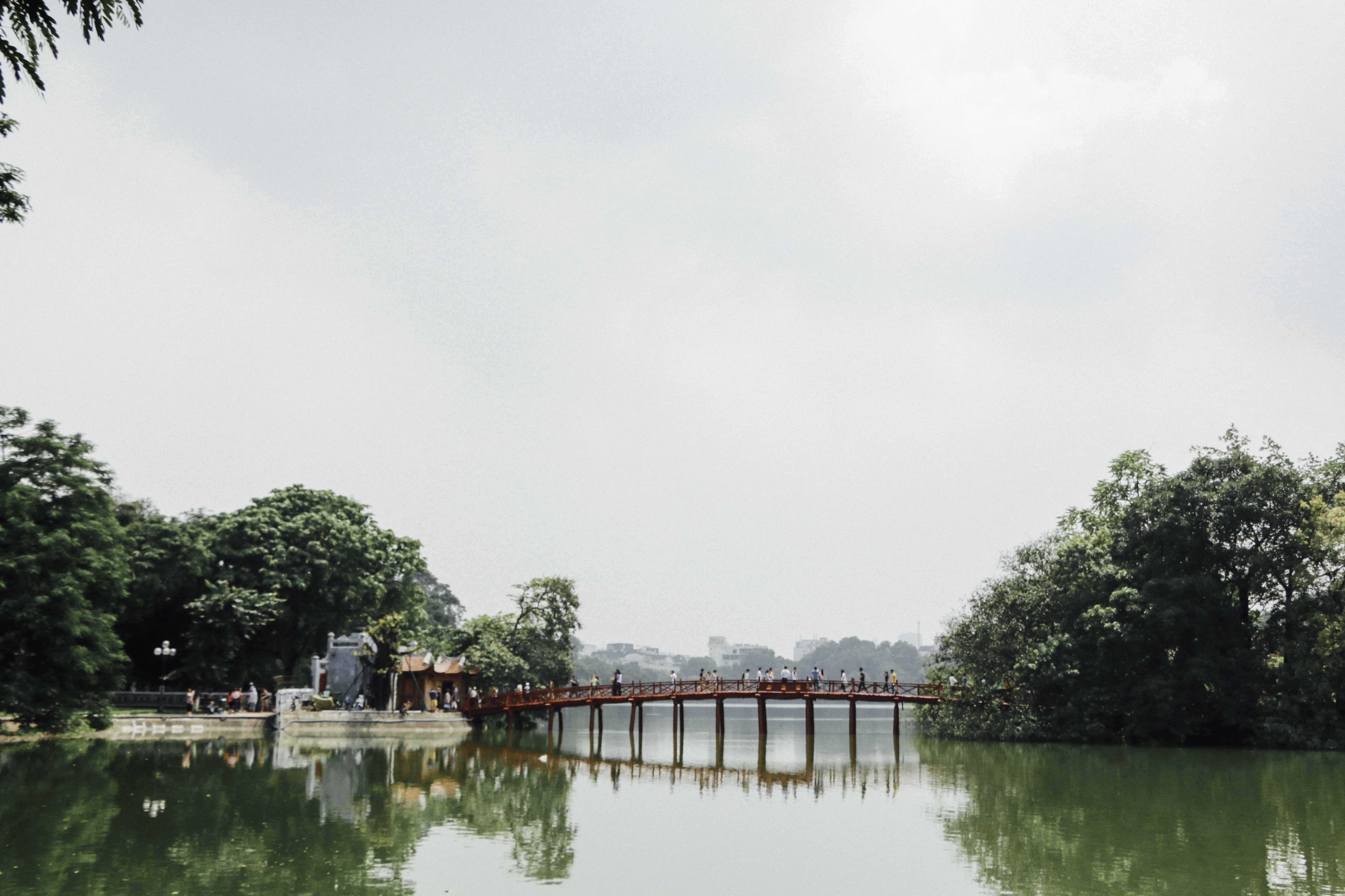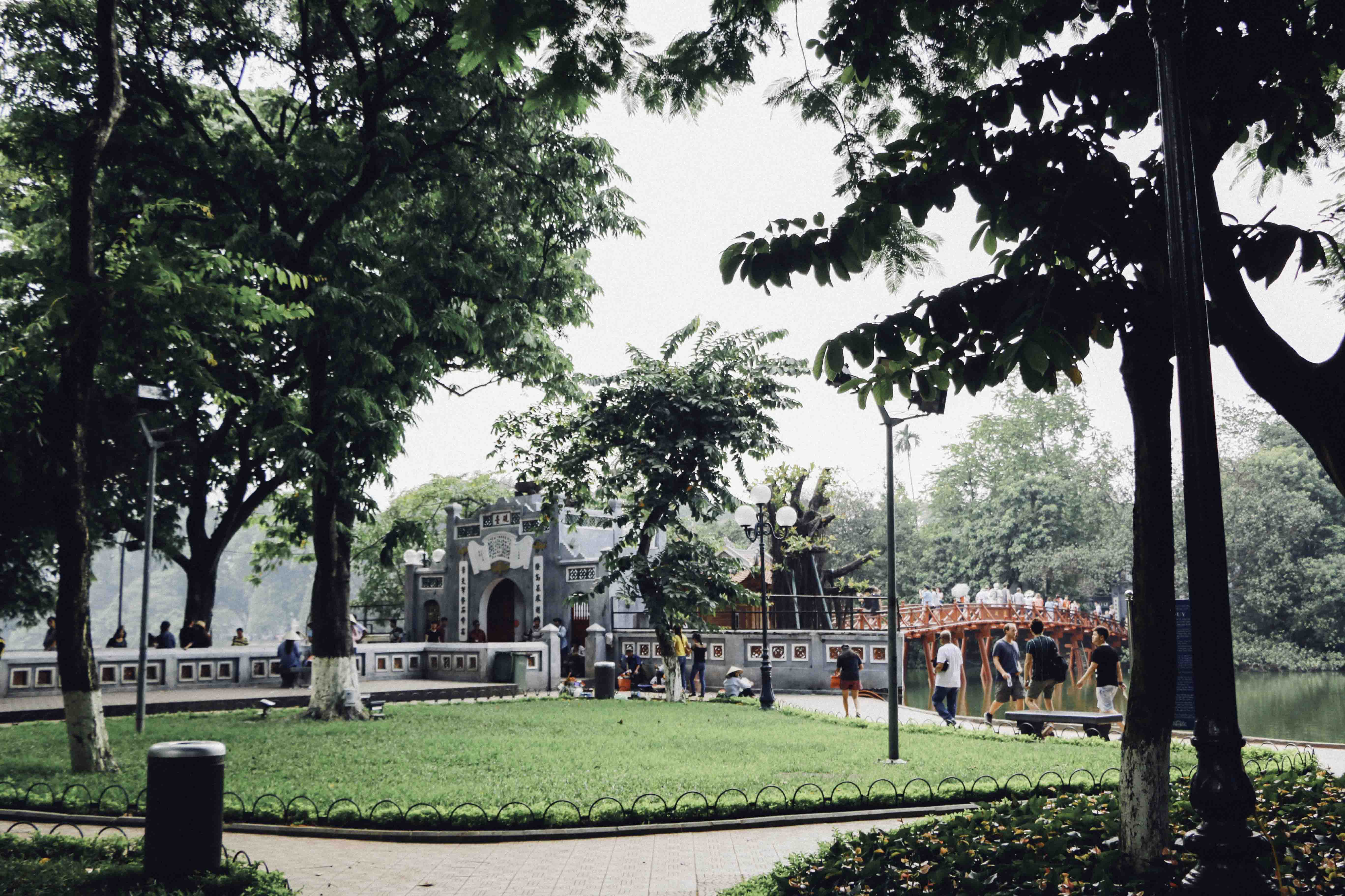 บริเวณใจกลางเมือง ทะเลสาบฮว่านเกี๋ยม(ทะเลสาบคืนดาบ) สะพานแดงที่ทอดไปยังวัดเนินหยก ที่อยู่บนเกาะเล็กๆกลางทะเลสาบ ทะเลสาบนี้ บริเวณโดยรอบจะป็นสวนสาธารณะ เป็นพื้นที่พักผ่อน