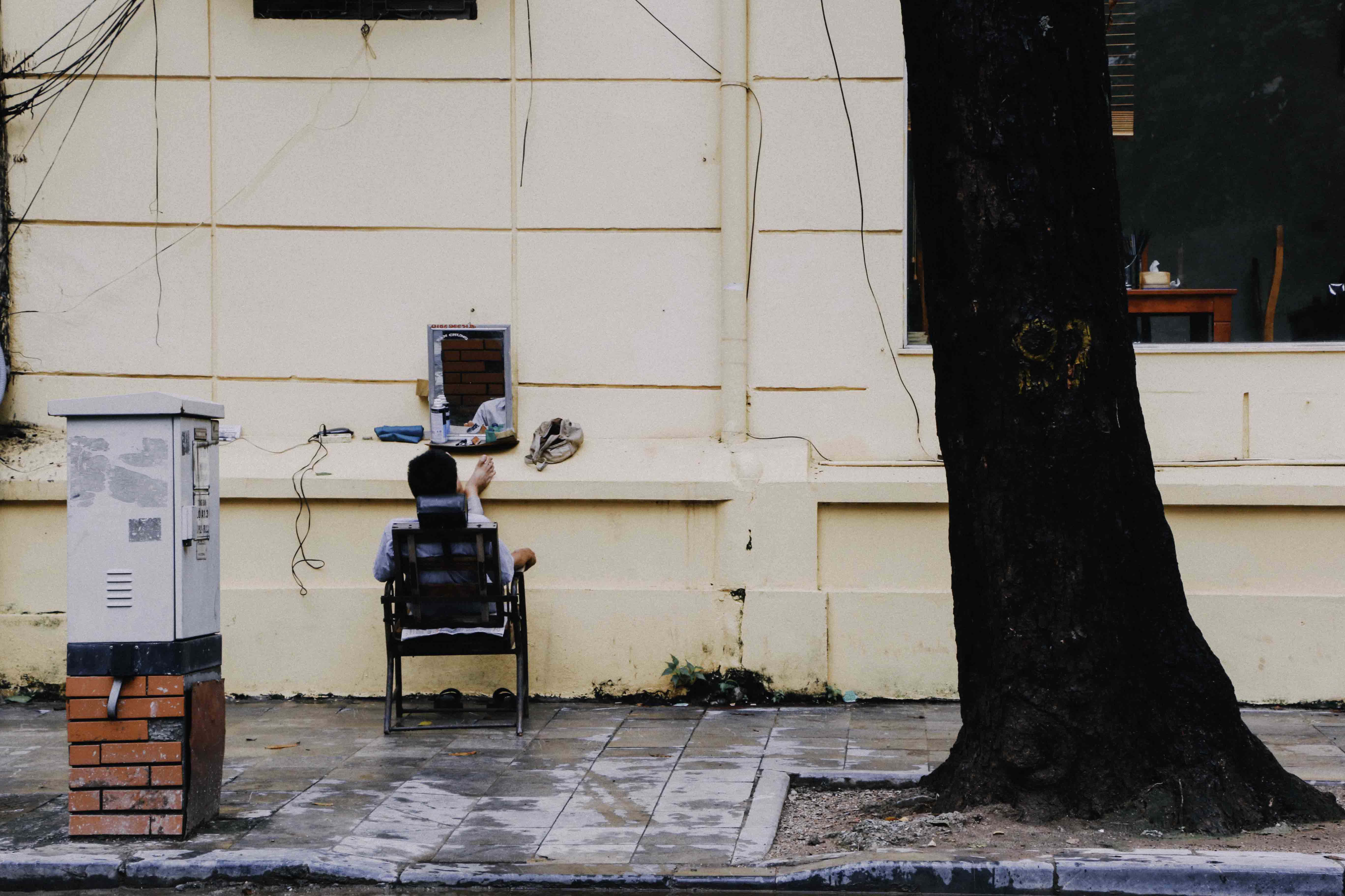เนื่องจากพื้นที่มีน้อย โต๊ะเก้าอี้เขาจะใช้เป็นเก้าอี้เตี้ยๆ กับพื้น ร้านข้างทางก็เป็นร้านเล็กๆนั่งเตี้ยๆ บางร้านไม่มีโต๊ะให้