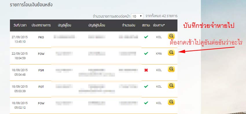 ดูรายการโอนย้อนหลังสมัยก่อน แยกชัดเจนว่า อันไหนโอนบัญชีตัวเอง/ต่างบัญชี/ต่างธนาคาร ตอนนี้รวมมิตรหมด แล้วมี CODE