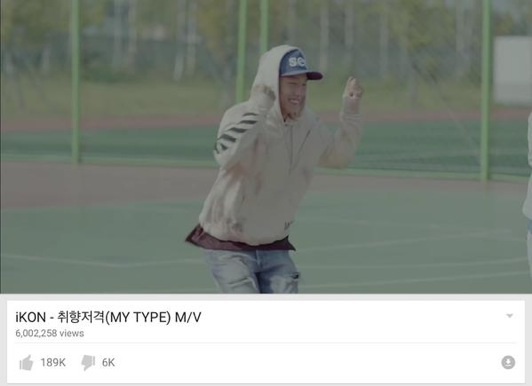 แถม ปัจจุบันยอดวิวเพลง MY TYPE - iKON บน Youtube เกิน 6 ล้านวิวแล้ว