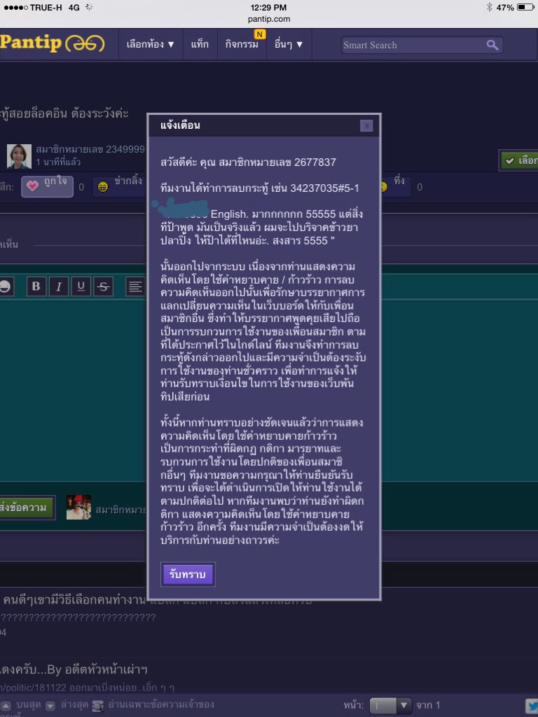 ทำให้ มองเห็นความจริงว่า แท้จริงแล้วเขาไม่ได้ต้องการลบข้อความ ไม่ได้สนใจเนื้อหา แต่ WM บางคนต้องการหาเรื่องหาเหตุผลกำจัดคนเห็นต่างมากกว่า.