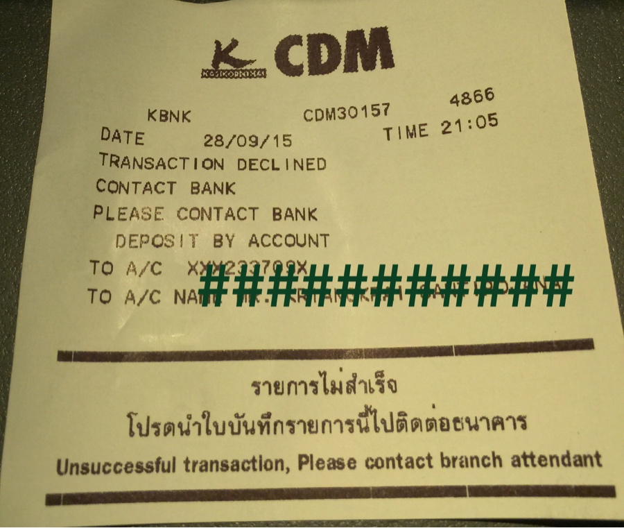 มาใช้บริการฝากเงินที่ TOPS สีลม 21:05 ใส่เงินไปไม่แน่ใจเรื่องจำนวนแต่เป็นเงินจริงแท้แน่นอน เครื่องกำลังตรวจนับแล้วขึ้น Error ดังภาพครับ