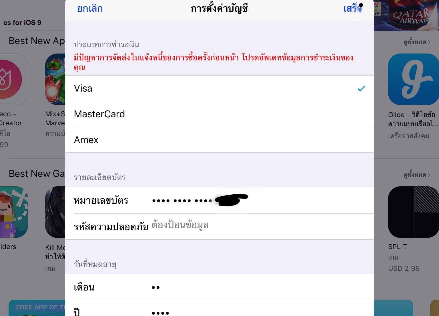 ช่วยด้วยยย กรอกข้อมูลการชำระในiTunesและApp Store แล้วทำไมมันถึงขึ้นว่าข้อมูลถูกปฎิเสธ ??