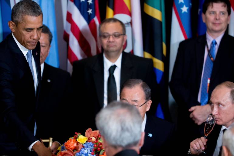 ประธานาธิบดีโอบามาได้กล่าวต่อที่ประชุมสมัชชาใหญ่ยูเอ็น เพื่อส่งสารบอกต่อประธานาธิบดีปูตินว่า การเข้าร่วมกับสหรัฐฯและพันธมิตรเป็นประโยชน์มากในการยุติสงครามกลางเมืองในซีเรีย พร้อมระบุ สหรัฐฯพร้อมจะทำงานร่วมกับชาติต่างๆ รวมทั้งรัสเซีย และอิหร่าน เพื่อหาทางคลี่คลายวิกฤตการณ์ในซีเรีย หลังจากกองกำลังสหรัฐฯได้เปิดฉากปฏิบัติการโจมตีทางอากาศถล่มกลุ่มไอซิสมาตั้งแต่เดือนส.ค.2557