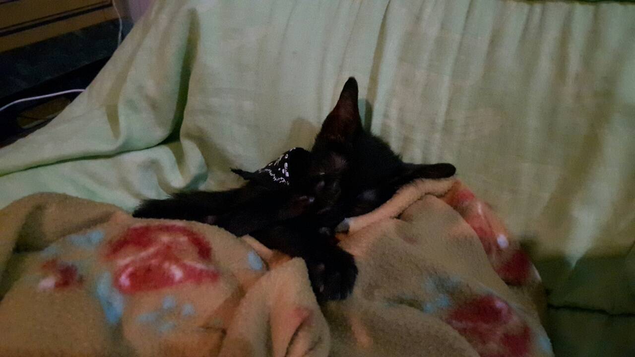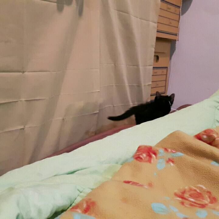 จากแมว 5 ตัว รอดมาแค่สอง คือตัวผู้สีดำ กับตัวเมีย