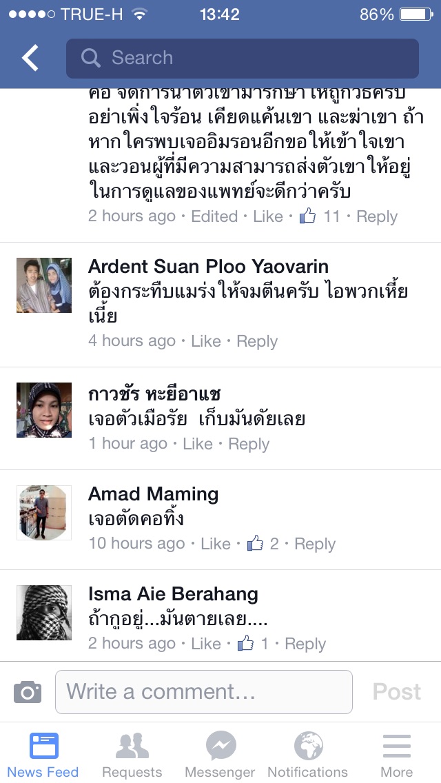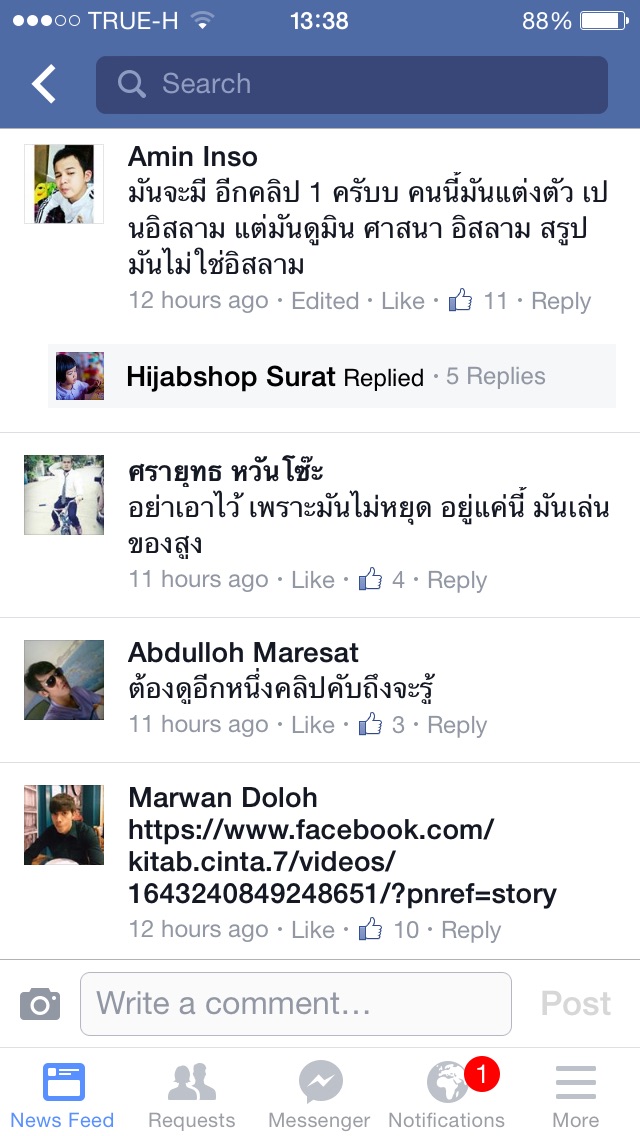 จริงอยู่ที่เมื่อก่อนเคยเป็นรัฐปาตานีมาก่อน แต่ก่อนหน้านั้นล่ะ ผมเคยอ่านมาเป็นอาณาจักรอะไรสักอย่างจำไม่ได้ที่ไม่ได้นับถือศาสนาอิสลาม แล้วถ้าคนทั้งโลกคิดแบบนี้วุ่นวายแน่นอนครับฆ่ากันไม่หยุดสิ้น ตอนนี้ผมเห็นว่าอิสลามไม่ได้โดนกีดกันศาสนา มีสิทธิเทียบเท่าทุกอย่าง แต่อิหม่ามบางคนปลูกฝังเด็กแบบผิดๆปัจจุบันผมเชื่อว่ายังมีอยู่ บางคนก็หัวรุนแรงสามารถทำได้ทุกอย่างโดยอ้างศาสนา