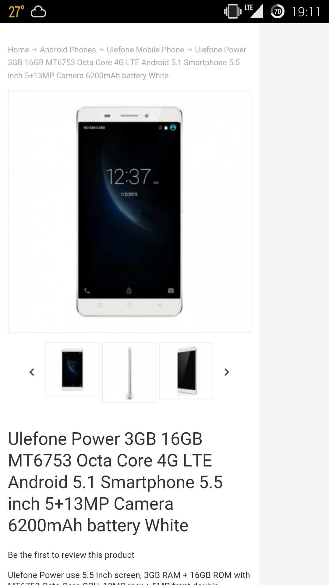 แต่.. ผมเห็นอีกตัว คือ Ulephoneอ Power สเป็คเหมือน B2 ที่คุณสั่งทุกอย่าง แต่ให้แบตโหดมาก 6,200 mAh ราคาเท่ากับ B2 เลย ผมว่าคุณสั่งพลาดตัวนี้แล้วล่ะ.. 555