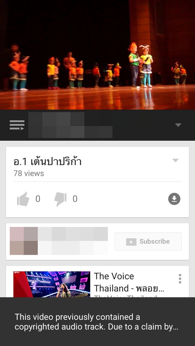 ตามชื่อกระทู้เลยครับ ตัดเสียงออกทั้งคลิปที่เราลงเลย ลูกผมเต้นแสดงบนเวที ประกอบเพลงพริกขี้หนูของพี่เบิร์ด เราก็ถ่ายคลิปเก็บไว้ แล้วก็ลง Youtube ในช่องของตัวเอง เอาไว้เพื่อเปิดให้ลูกดูเรื่อยๆ เพื่อความสะดวกในการเปิดบนทีวี หรือมือถือ นานๆเปิดที เพราะปกติคลิปลูกอื่นก็จะลงใน Youtube เอาไว้นานๆทีมานั่งดูกันเล่น แต่เมื่อวานจะเปิดดู ก็งง เห้ยย!!! ทำไมไม่มีเสียง ก็นึกว่าเครื่องเรามีปัญหาหรือทีวีมีปัญหา ก็เลยเช็คทั้งในทีวี มือถือ ก็เป็นเหมือนกัน แต่เปิดคลิปอื่นๆของลูกก็ยังมีเสียงปกติ เลยเอ๊ะ...สังเกตุเห็นตอนเปิด ด้านล่างมีเขียนคำนี้ขึ้นมาว่า "This video previously contained a copyrighted audio track. Due to a claim by a copyright holder, the audio track has been muted." เลยถึงบางอ้อเลยว่ามันติดลิขสิทธิ์เพลง แต่เห้ยยยยย นี่มันคลิปลูกเต้นนะเฟ้ยยย เสียงก็ไม่ใช่ว่านิ้งเพราะแบบเอาไปใช้ที่อื่นได้ งงมากว่ามาตรฐานการตรวจลิขสิทธิ์เพลงมันเคี่ยวถึงขนาดนี้เลยหรอ พ่อๆแม่ๆใครมีปัญหานี้กันบ้างครับ แล้วทำไงถึงจะอัพโหลดแล้วมีเสียงอะครับ อยากเปิดให้ลูกเต้นตามอะ