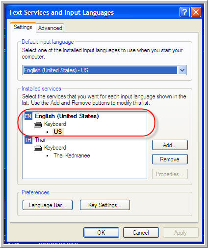 คลิกขวาที่ En/Th ที่แสดงภาษามุมขวาล่างของจอ