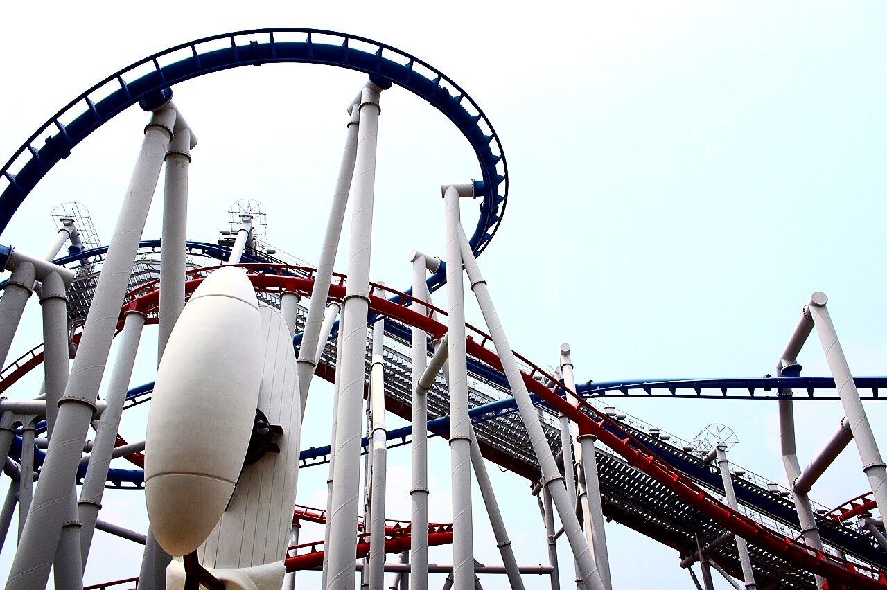 เครื่องเล่นที่อยากแนะนำ เจ้านี่เลยค่ะะะะ เสียวไส้มากกกกกก ถ้าเป็นสีแดง คือเราจะนั่งบนรถไฟเหาะค่ะ