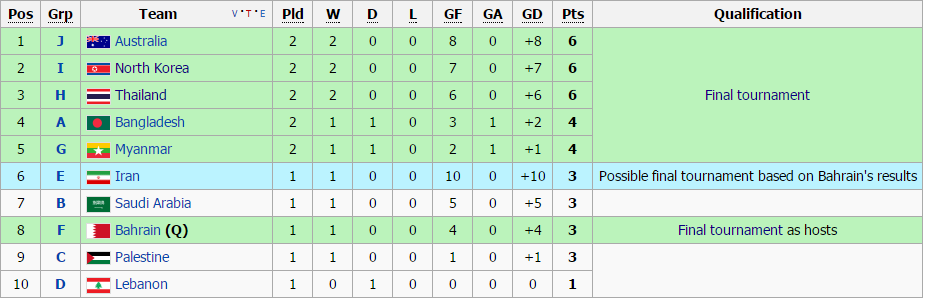 สำหรับกลุ่มอีของอิหร่าน ไม่มีผลกับไทยแล้ว เพราะคูเวตดันไปเสมอเนปาล ทำให้กลุ่มนี่อันดับ 2 จะมีแค่ 4-5 แต้มเท่านั้น