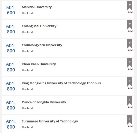 ใน 800 อันดับแรกของโลก ไทยมีติดเพียง 7 มหาวิทยาลัยเท่านั้น