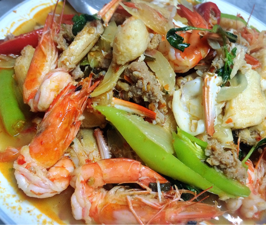 กระเพรารวมมิตรทะเลจานโตงบไม่เกินสามร้อย