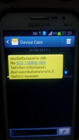 วันที่ 24/8/58 ก็มี sms มาว่าซ่อมเสร็จแล้วและของจะไปถึงสาขาที่เอามาซ่อมใน 3 วันทำการ