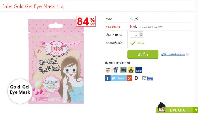 1.Jabs Gold Gel Eye Mask 10 คู่ รวม 90 บาท