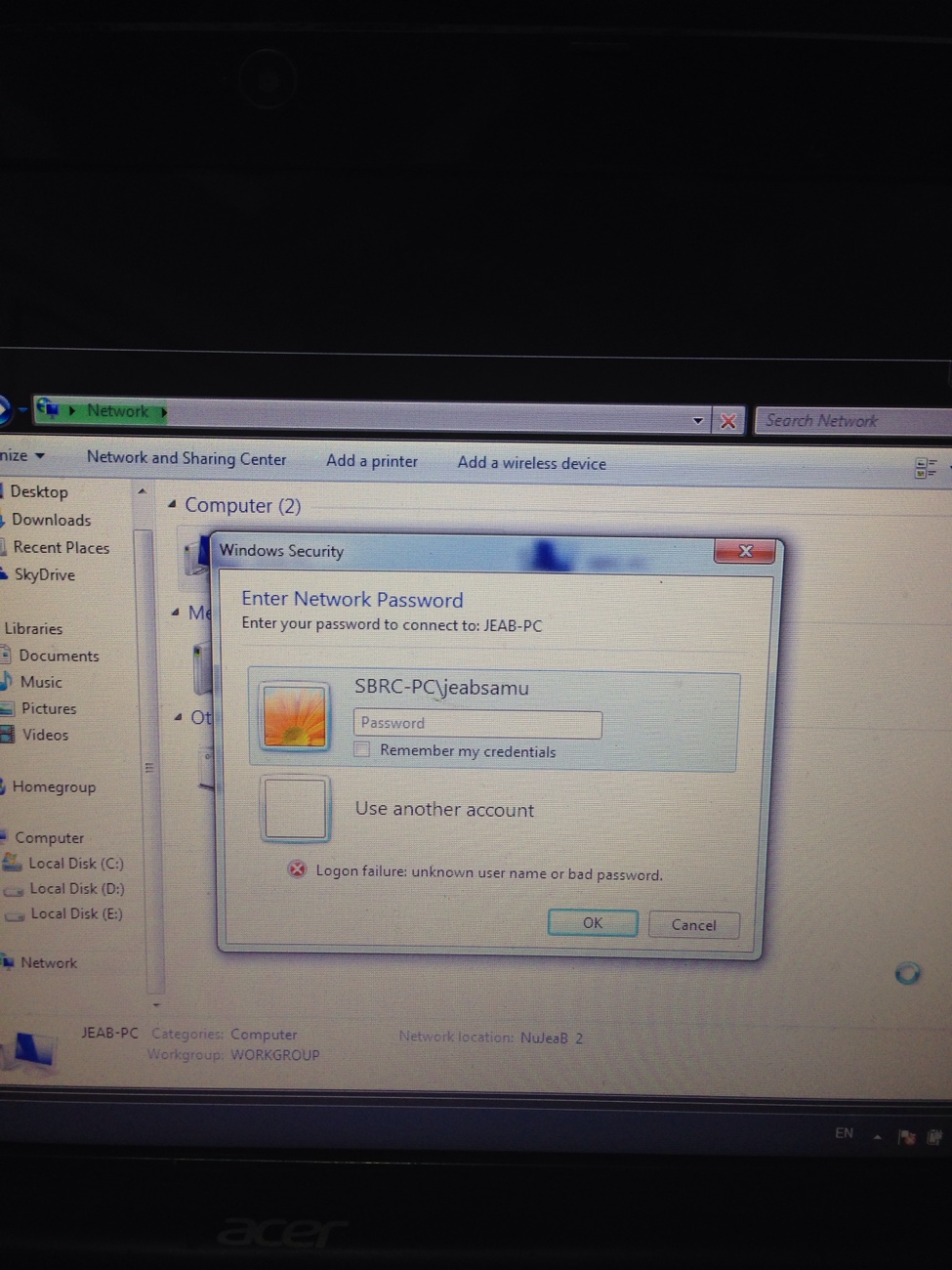คือจะย้ายข้อมูลด้วยสายแลน crossover แล้วติดwindows security แชร์เครื่องแล้ว พอมาคลิกจะคอมที่แชร์ ติดว่าต้องใส่พาสเวิด งงเลยทีนี้ ไม่ได้ตั้งอะไรนะ ต้องแก้ยังไงคะ ถามผู้รู้ทีค่ะ