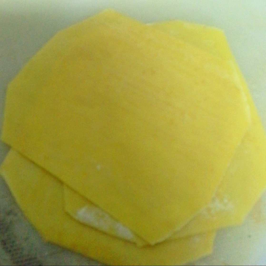 แผ่นเกี๊ยวตัดมุมทั้งสี่ ให้โค้งๆ
