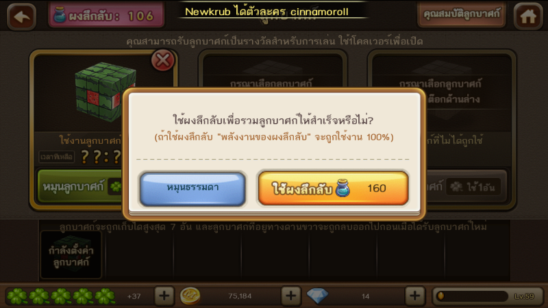 จากกระทู้เมื่อวานซืน http://pantip.com/topic/32419723 ผมยังเก็บผงลึกลับไม่ครบ 80 อันซักที ก็เปิดลูกบาศก์ที่ได้ไปเรื่อยจนกระทั่งเมื่อคืนลูกบาศก์ไม้ได้ออร่าซึ่งปกติก็รอเวลาเปิดกันไป แต่..ผมคิดว่าลองเอา